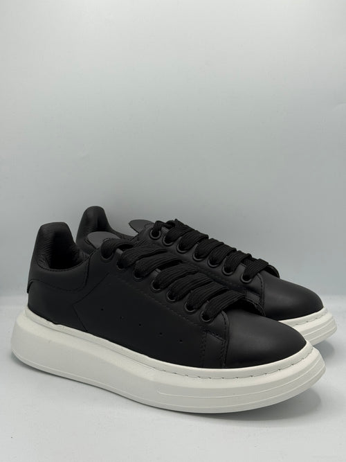 Sneakers Noires Premium – Cuir Lisse & Semelle Blanche Épaisse